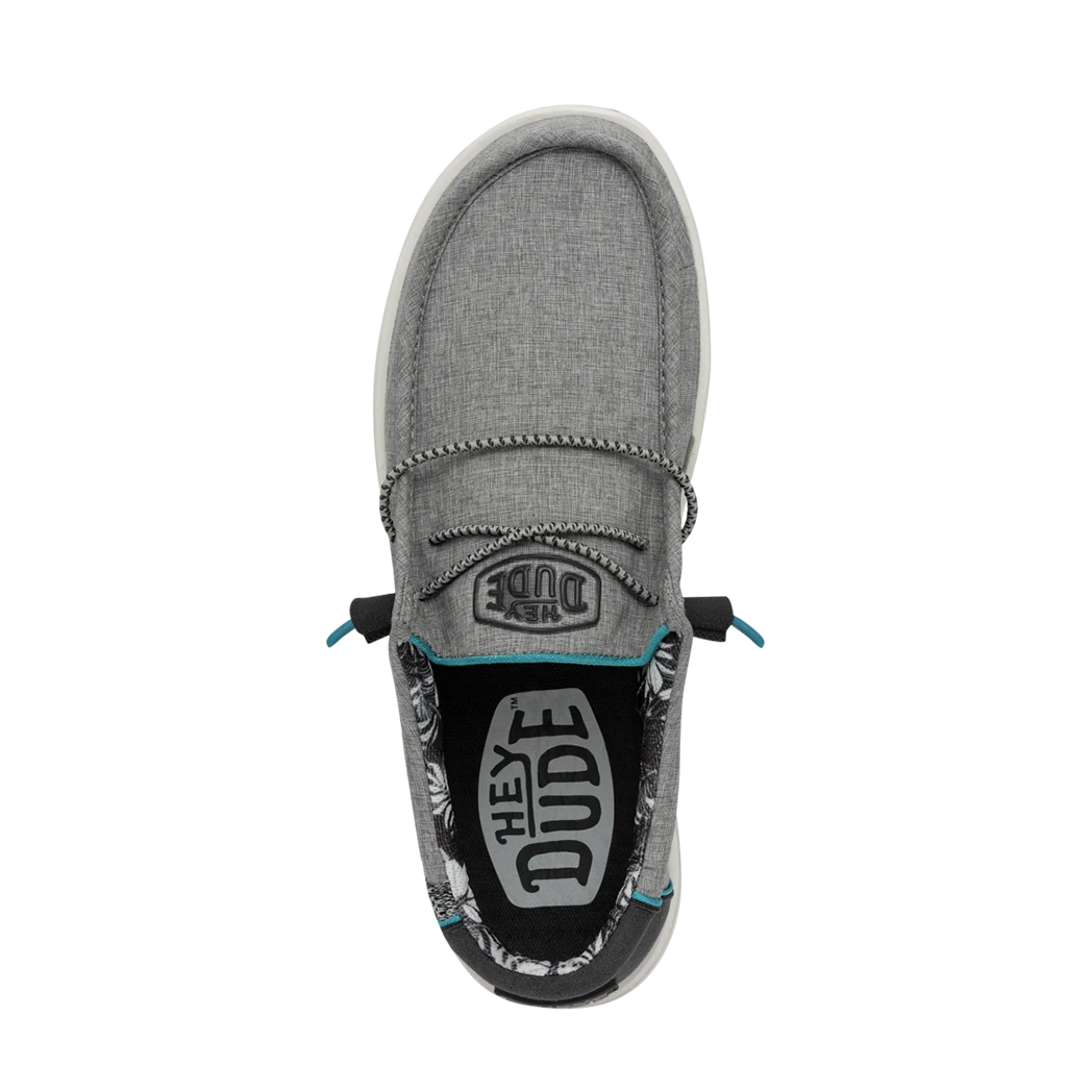 Perfect for the Lake or Beach, the Hey Dude Wally H20 Graphite is a water-ready shoe, with a stretchy polyester upper and a soft cotton lining that keeps your feet cool and comfortable.  Elastic laces make the shoes easy to slip on and off and the perforated mesh insole adds an extra layer of cushion and air circulation to the tried-and-true foam outsole.Â