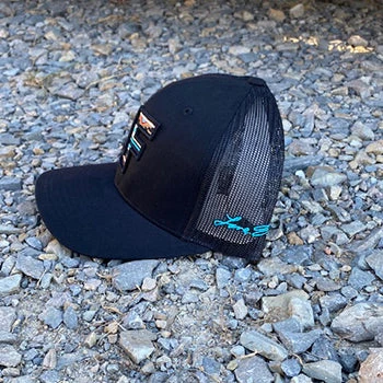 Lane Frost Brand Black Mesh Back, Logo Cap. This cap features an embroidered Logo with Aztec Inlay Design.