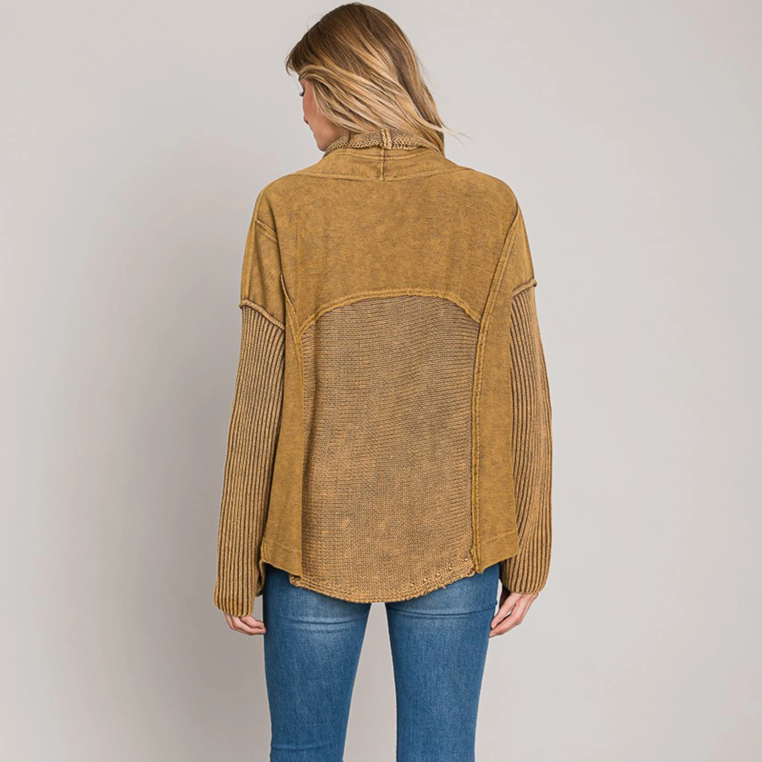 Each sweater is dyed so that no two are the same. Each is uniquely dyed so please expect minor differences from the example here. Shawl neck collar and front pockets give this a casual feel.
