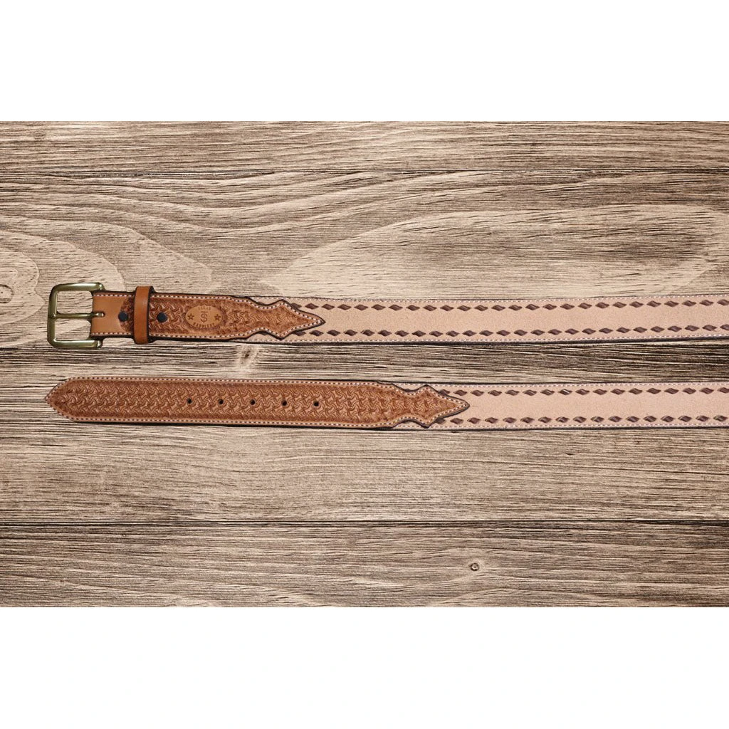 Saddle Tan Belt with Brown Buckstitch, from Texas Saddlery.