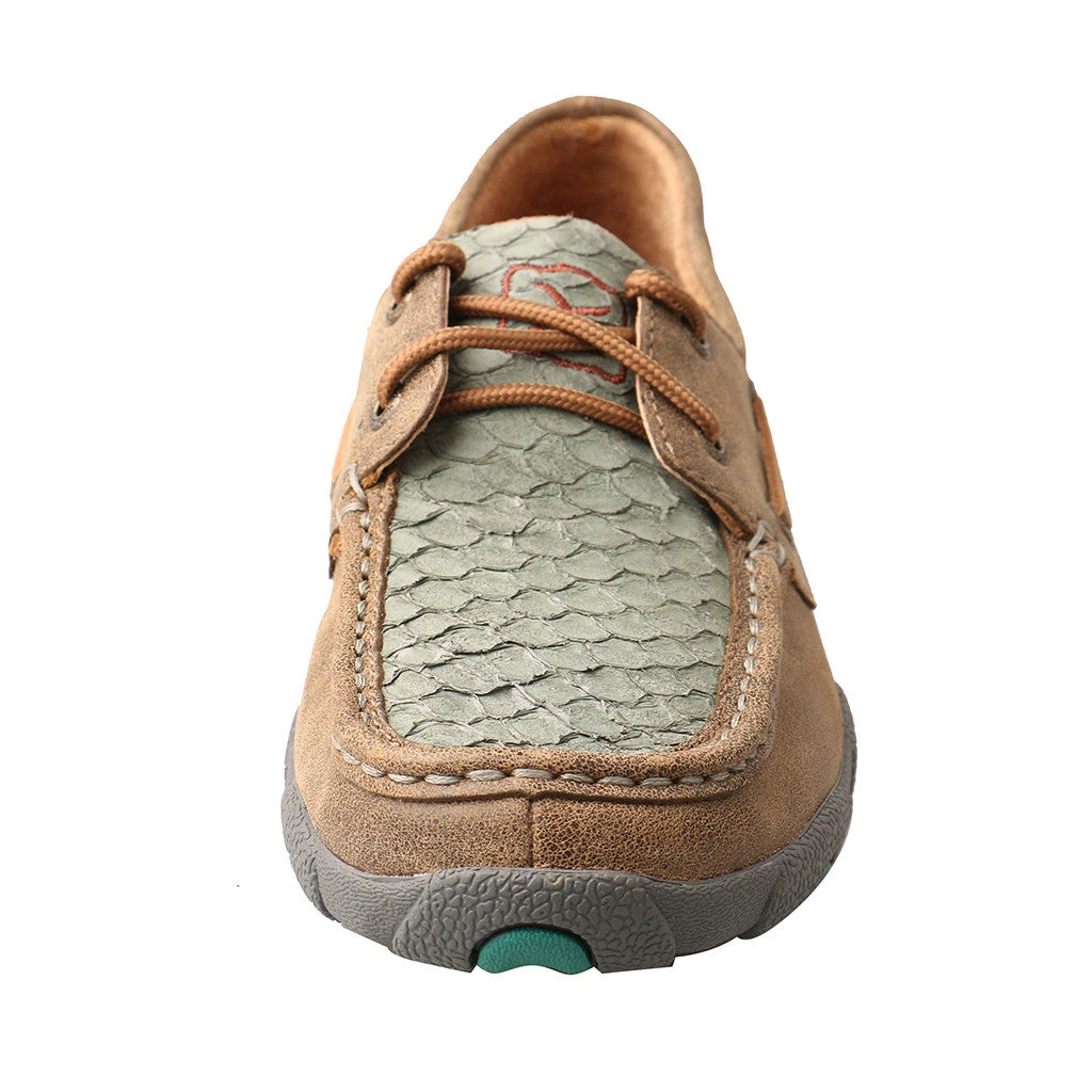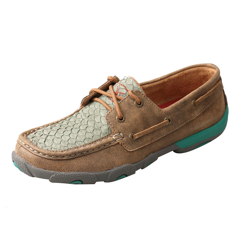 This Twisted X Women’s driving Moc features a Tyche Fish Toe in a beautiful Teal color with Teal Trim. These Mocs are known for their comfort, style, and durability.
